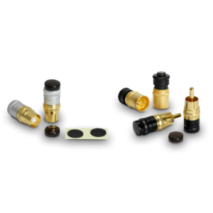 Employment of materials and processing technology superior in vibration control effect. SIP-8Q is made of non-magnetic gold plated brass and 2017 Dural. This structure has the effect of reinforcing the terminal strength and creates superior vibration control. Furthermore, a rigid connection by this highly precise process improves the vibration control effect. The included QR-8(Quartz resonator) will further improve the vibration control performance.