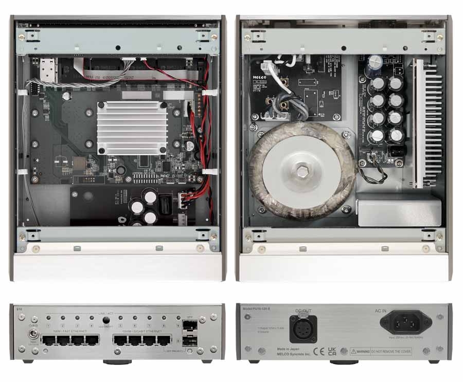 The Japanese Melco devoloped their new flagship, a high performance switch which is quite an unusual architecture compared to an IT dataswitch. There are four 100 Mb RJ45 ports – these provide the best audio&video quality. There are four 1 Gb ports – these are ideal for PC connectivity, and are ideal for the Roon Core processor which generates high traffic flow.