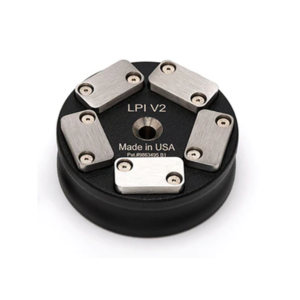 It also lower W & F values on any turntable, by adding significant mass to the system. Wobbly records will be flatter, thus enabling the stylus to track the record better. The LPI Short Spindle is compatible with many turntables, while the LPI Long Spindle works with turntables that incorporate a longer than average spindle.